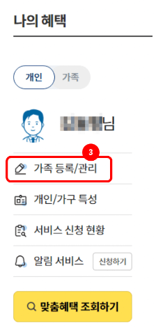③ 가족 등록 / 관리 메뉴를 선택해서 클릭