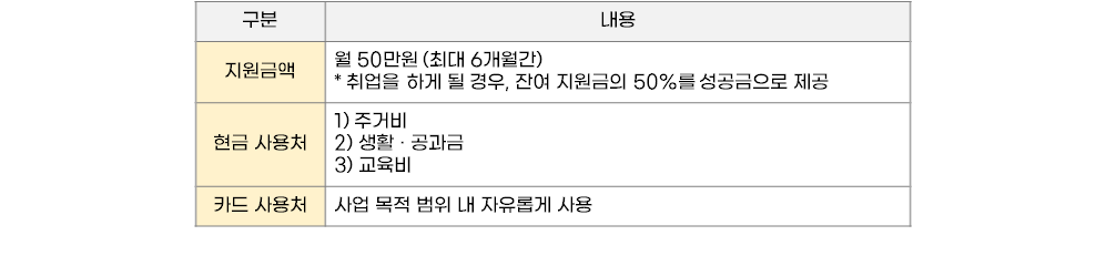 단, 취업을 하게 될 경우 지급되는 지원금은 더 이상 제공은 되지 않으나, 성공금 형태로 잔여 금액의 50%를 준다고 합니다.