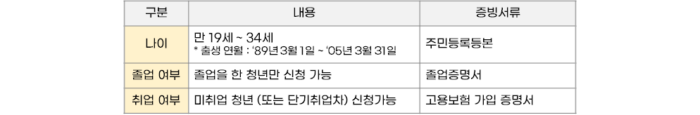 취업을 돕는 취지가 있어, 재학 또는 휴학 중이지 않고 졸업한 청년에게 제공이 됩니다.
