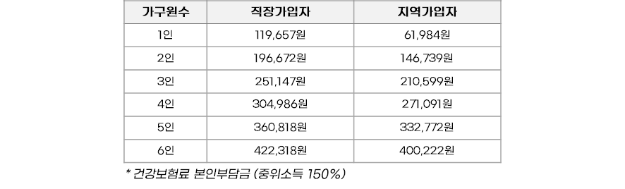 소득 조건의 경우 중위소득 150% 이하로, 아래 표에 해당됩니다.
