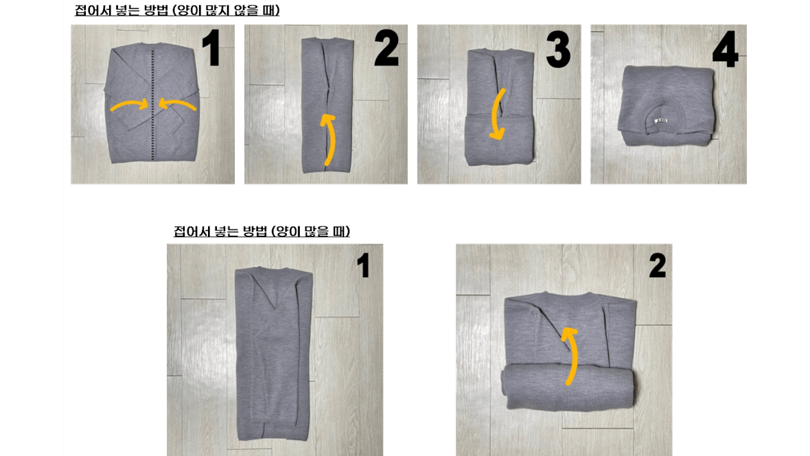 참고로, 니트 사이에 신문지 또는 종이를 넣어서 보관하는 것 또한 잊지 마시기 바랍니다.