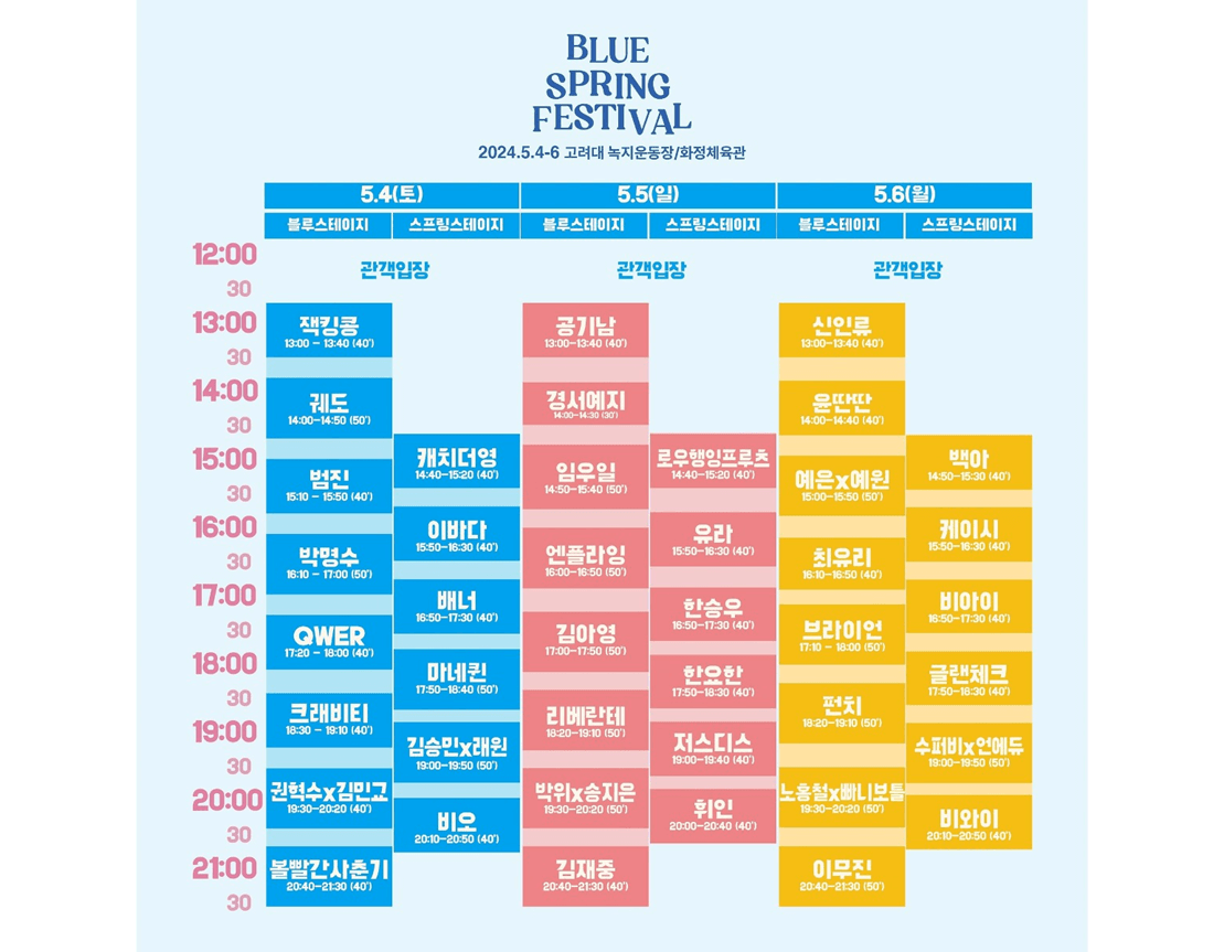 총 2개의 무대가 동시에 진행이 되니, 블루스테이지와 스프링스테이지를 잘 찾아서 가셔야 합니다.