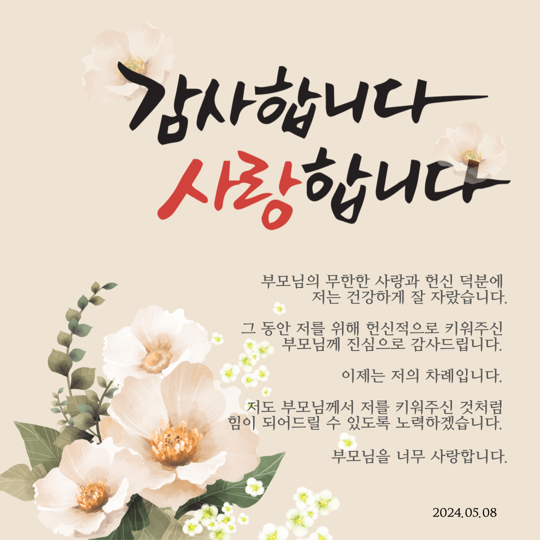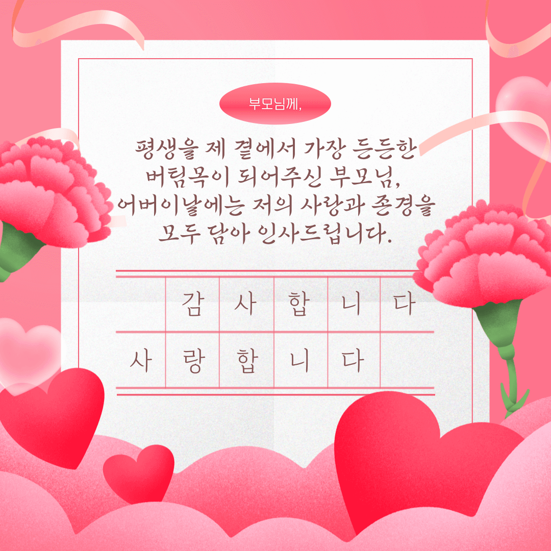 올해는 위와 같이 편지를 부모님께 전달드리며 마음을 전하는 시간이 되었으면 좋겠습니다.