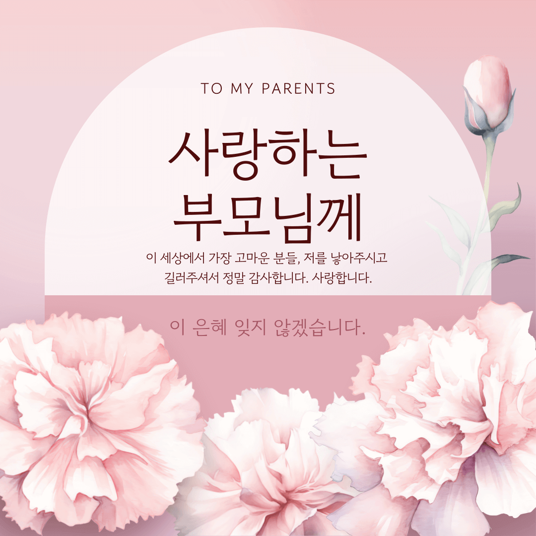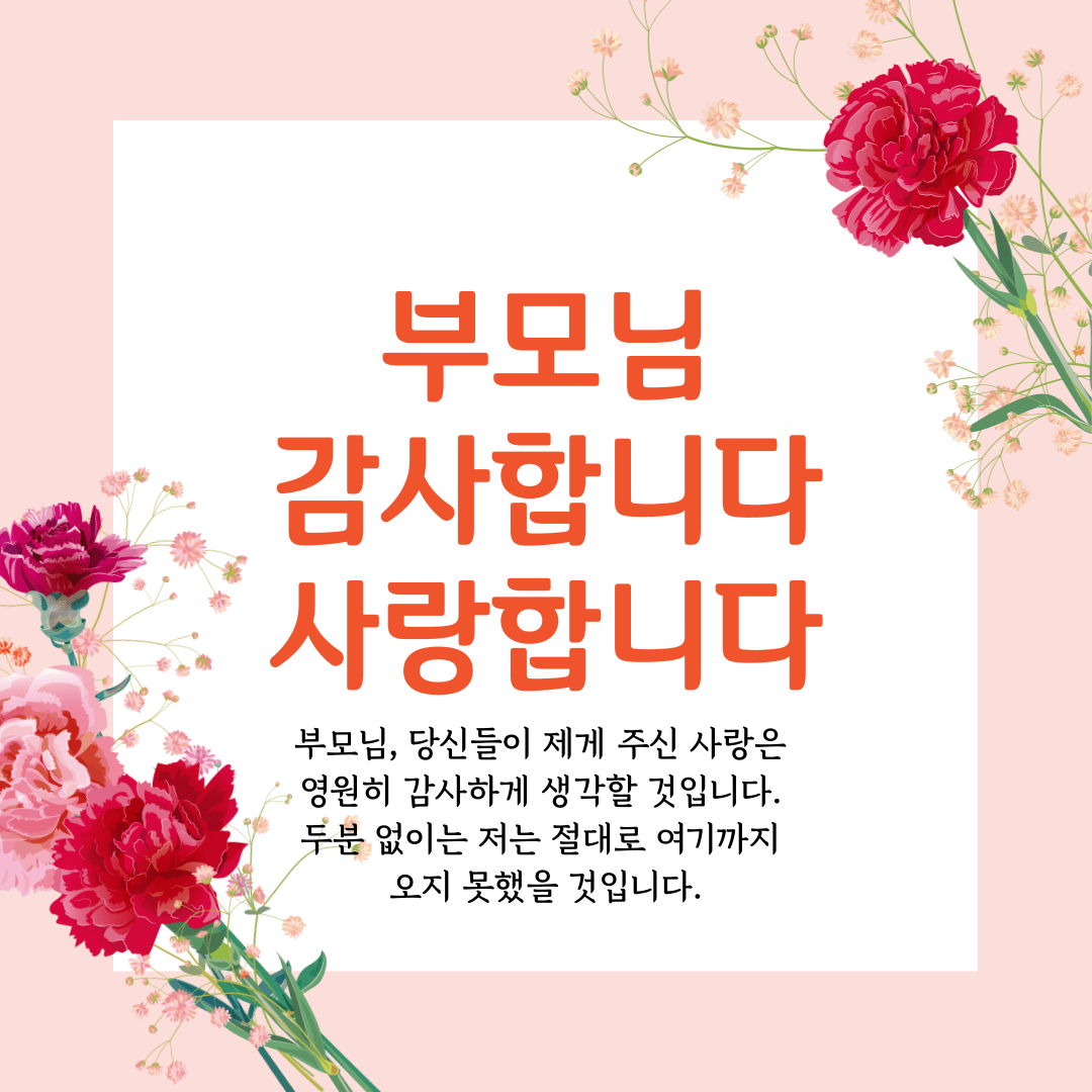 지금까지 우리를 챙겨주고 아껴서 키워주신 부모님께 감사의 인사를 담은 문구로 만든 편지 아래와 같이 공유드립니다.