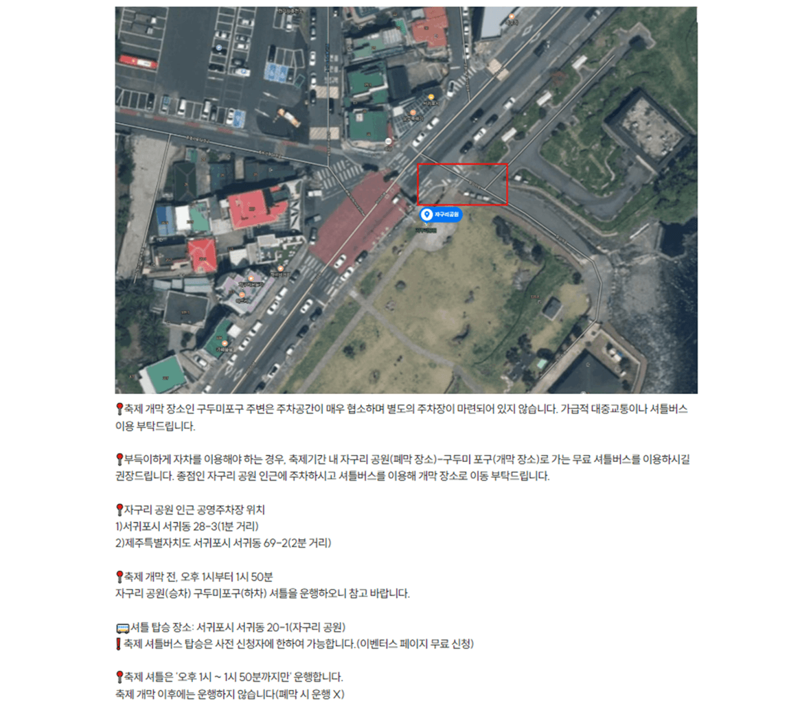 축제 당일 혼잡할 수 있으니, 행사 주최 측에서 안내하는 사항을 참고 바랍니다.