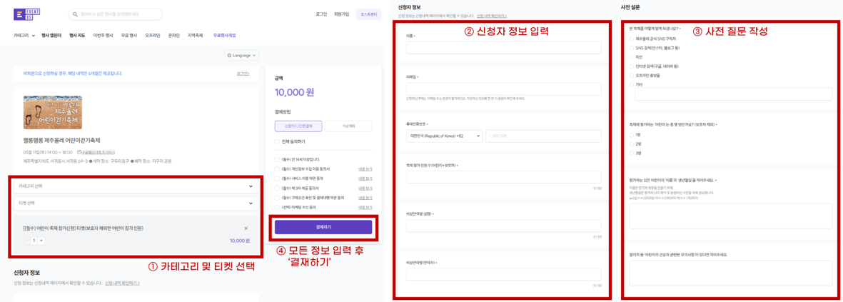 - 참가비 : 어린이 당 10,000원(보호자 제외. 공식 기념품 제공 및 축제 프로그램 참가 가능)